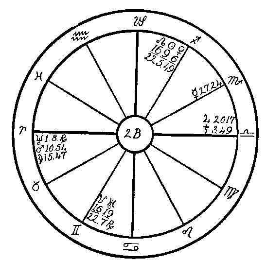 We see that in the case of horoscope no. 2E, the native was in the hands of fate, and she had to pass through the greater part of this life in darkness, while in the second figure fear and excessive emotion precipitated total blindness.
