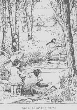 He held in his hand a hazel twig, and this he waved twice round his head, and at once hundreds of yellow and blue butterflies and dragonflies surrounded them. The largest of them all, as big as a bird, held in its mouth two spare pairs of dragonflies wings. The youth took these and fastened them somehow on to their feet. "Now you will be able to travel in the Land of the Twins and as fast backward as forward. What do you wish to know first?" he asked, for he could see that they both were greatly desiring to ask questions.