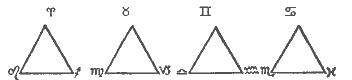 In order to determine at a glance just what aspect the planets in a horoscope have to one another, when within orbs we note the following division of the zodiacal signs: