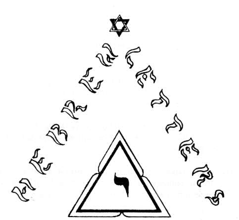 The interlaced triangles at the top of this diagram and the double triangle at its center symbolize the interaction of the three fold creative powers of God on the spiritual and on the material planes of being.