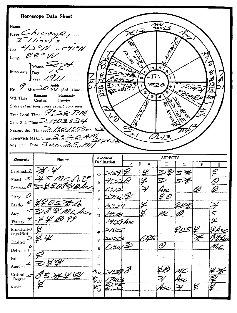 1. Cast a horoscope for September 12, 1911, 12:50 A.M. Seattle WA. (optional)