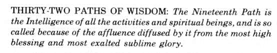 A further, deeply esoteric, meaning is also discernible in this Tarot as relating to the occult forces which rise through the spine to the brain, where they awaken the power of the spiritual centers of the brain itself and also of the glands in the head which are important in the alchemy of soul-growth.