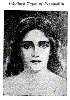 In the case of the pure type, one particular gland, either by its excessive action or its subnormal activity exercises a dominating influence upon the traits of the individual; and either as the strongest link in the chain of glands or the weakest, it becomes the ruler and all of the others must accommodate themselves to its dominance. Among all the others as the chief commander of growth, development, and normal function, it holds the balance of power. It dominates every emergency by its strength or weakness, and in this way it creates its own type of individual with characteristics and attributes peculiar to itself. The pure types are the adrenal, the thyroid, the pituitary, the pineal, and the thymus.