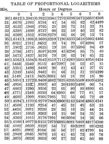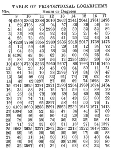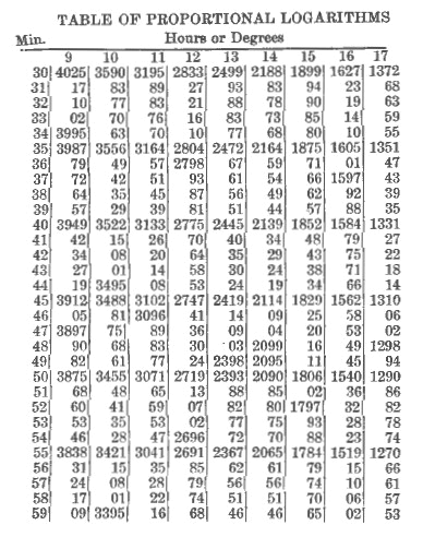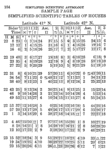 A table calculated to show what signs and degrees of the Zodiac are on each of the cusps of the twelve mundane houses at any time during any day or night in the year.