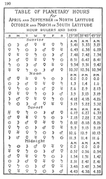 The table shows the rulership of the planets over the various signs and a study thereof will bring out the underlying system and philosophy.