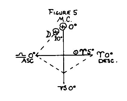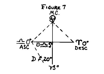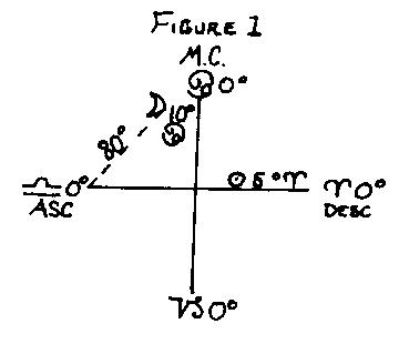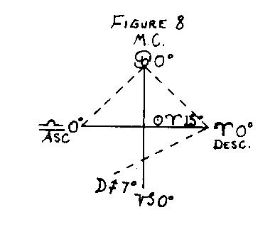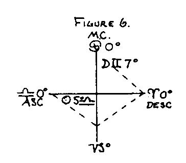 The term "quadrant" means quarter. The first quarter of the chart from AC to nadir is female, the second quarter from nadir to DC is male, the third quarter from DC to MC is female, and the fourth quarter from MC to AC is male. Thus if the sex position of one of the factors, either AC or Moon, is in an opposite sex from that of the other factor, the sex of the quadrant in which the Moon is placed at Epoch determines the sex of the native.