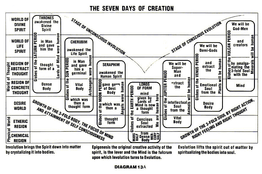 The path of evolution is not a circle but a spiral. We are a better humanity than the angels were when they were human during the Moon Period, and the animals which will be human during the Jupiter Period will be a better humanity than we. As the lowest globe at that time will be in the Etheric Region, only a vehicle made of ether will then be used by any being. The finer forces of nature will be available to all during that time, and the humanity of the Jupiter Period as well as ourselves will be ale to wield the lightning. Therefore it is necessary that they should know by experience the nature of pain which may be inflicted by the misuse of a superior power. To give them the necessary compassion they have been made in certain respects like ourselves, capable of feeling the pain and suffering incident to physical existence. Thus from the present evil there will come good to both man and beast.