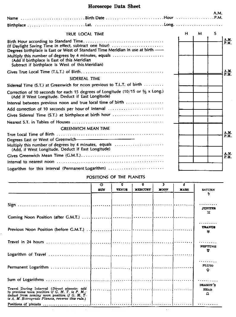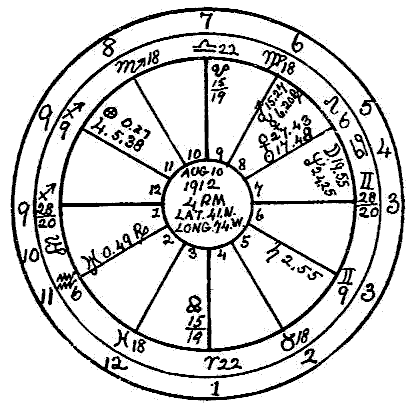 In Astrology Independent Study Module No. 12, you completed the setting up of the horoscope for August 10, 1912, 4:00 P.M., New York City. We will now consider the subject of the aspects between the planets in this horoscope.