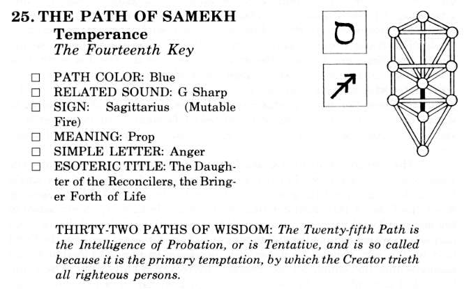A further, deeply esoteric, meaning is also discernible in this Tarot as relating to the occult forces which rise through the spine to the brain, where they awaken the power of the spiritual centers of the brain itself and also of the glands in the head which are important in the alchemy of soul-growth.