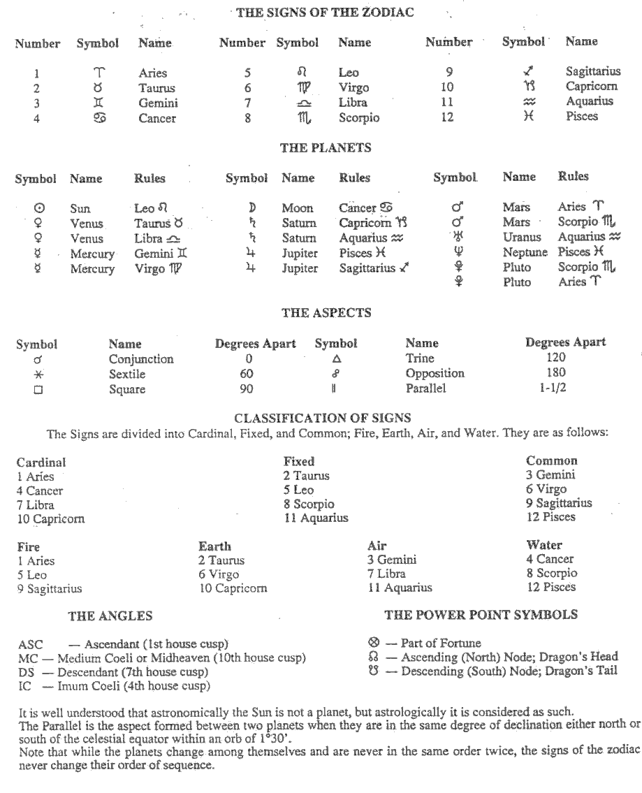 (Note: With the exception of the required chart calculation worksheets, you will find here all of the reference materials needed for the Astrology Self-Study Modules.)