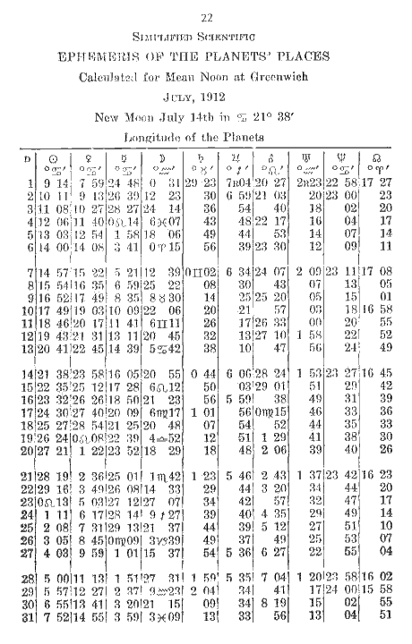 In the course of some years of correcting lessons in Astrology it becomes evident that there are certain particular questions which, although explained in the printed lessons, do not seem to be explained well enough. At least a great many students have trouble with them. These questions are concerned with time, both local and Greenwich, and with the directions in which the planets and the signs move or appear to move; also with the method of subtracting a certain degree and minute of one sign from a certain degree and minute of another sign in order to find out how many degrees a planet has traveled when it has moved from the first point to the second.