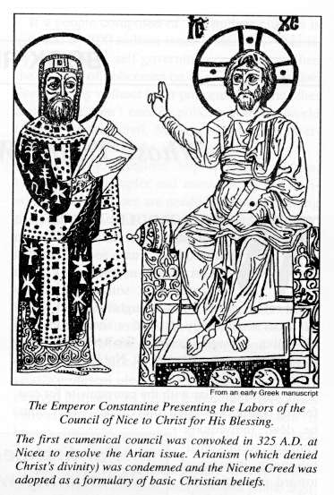 At this juncture appear Arianism, Nestorianism, Monophysitism, and Apollinarianism. (This latter "heresy" exactly describes the Rosicrucian understanding of the Being Christ Jesus: Christ, the Logos, displaced Jesus' Spirit. Jesus' human nature was ruled by a "Divine Guide." Apollinarius thought that he had resolved the problem of uniting the divine and the human in one person. But he was immediately attacked.) We see, for the first time, the introduction of purely theological definitions set forth as articles of belief, dogmas having no basis in Scripture but arising out of deduction and elucidation.